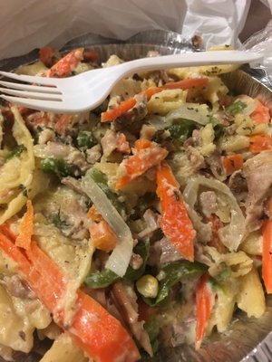 The chicken was uncooked and disgusting. I ordered off uber eats i paid $22 for this... I am utterly disappointed and disgusted i cant even finish the food. Rasta pasta should not look nor taste...
